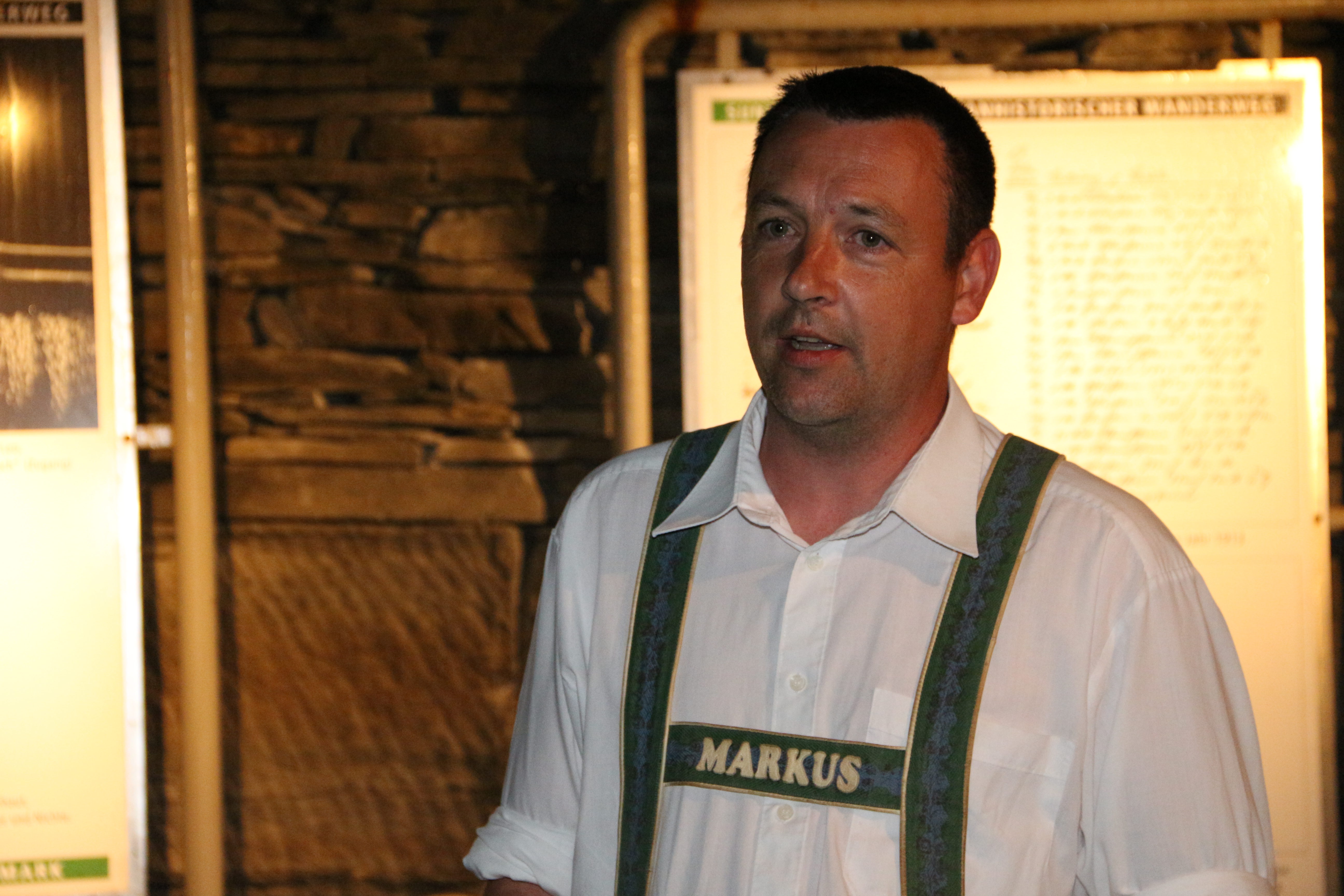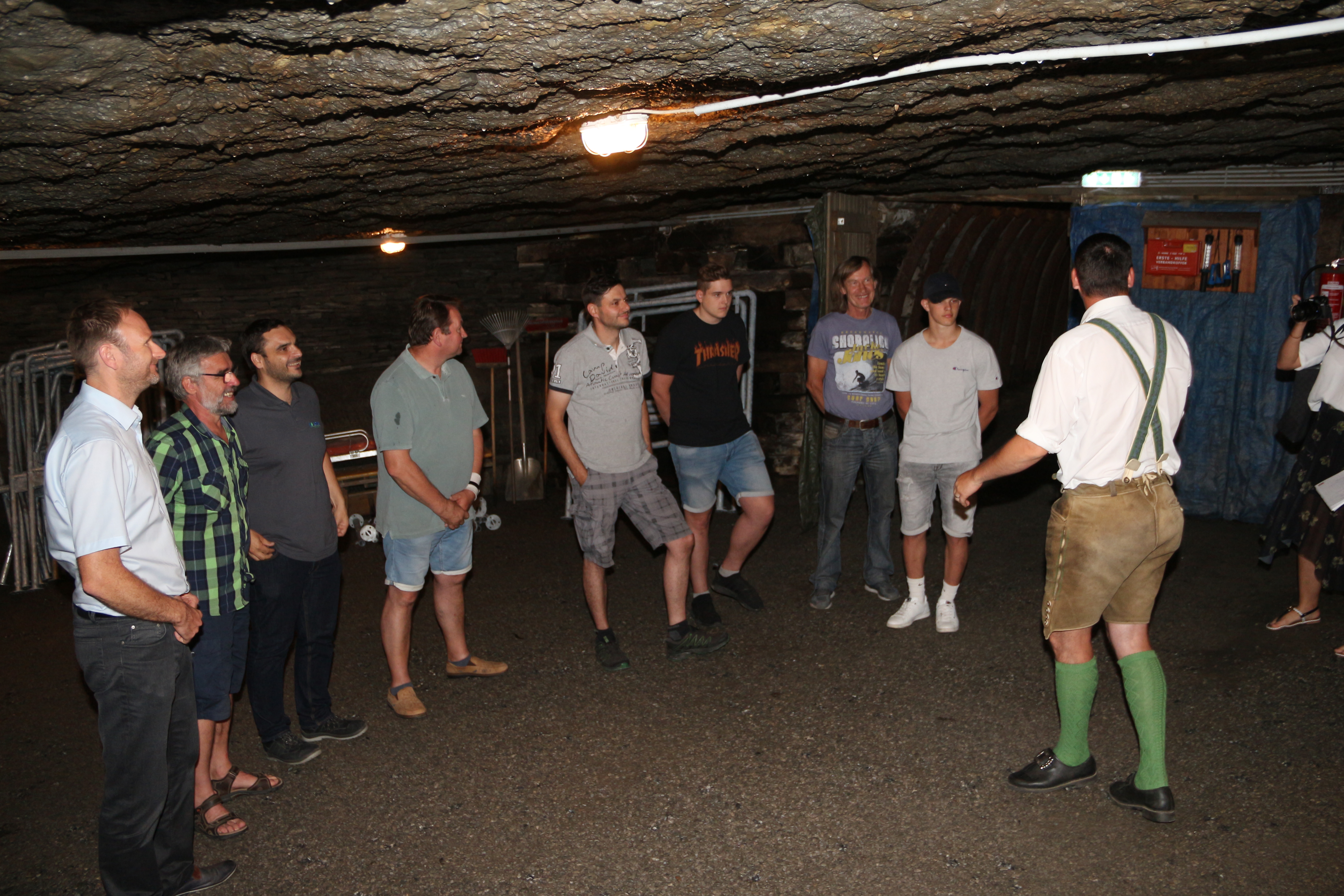 Markus Kern, Vizebürgermeister der Gemeinde Kainach bei Voitsberg, bedankte sich bei den (u. a. ehemaligen) Schülern der PTS Köflach und überreichte ihnen zusammen mit Norbert Marhold, Obmann jenes Vereins, der sich um den Erhalt des Schaubergwerks kümmert, Dankesgeschenke.