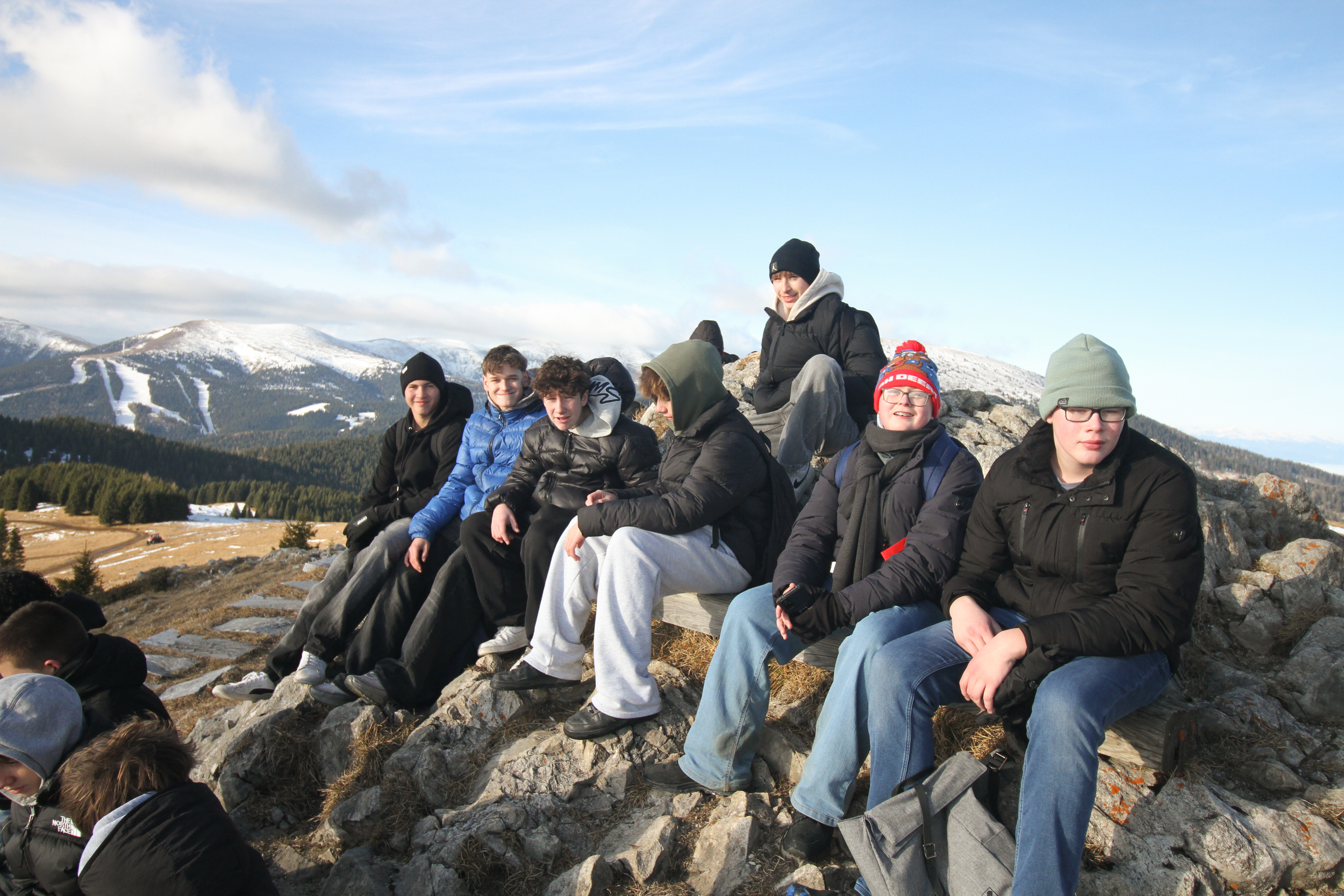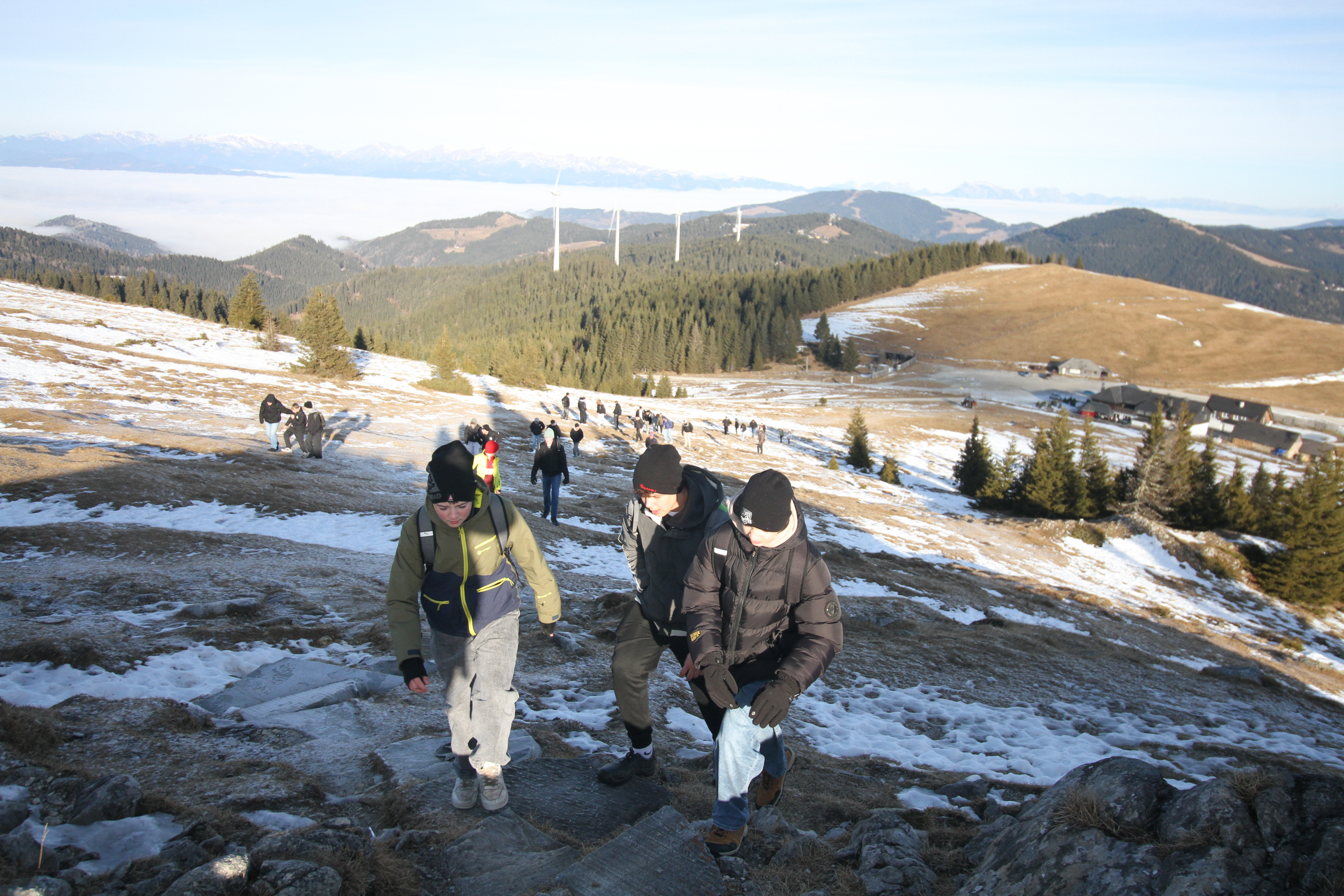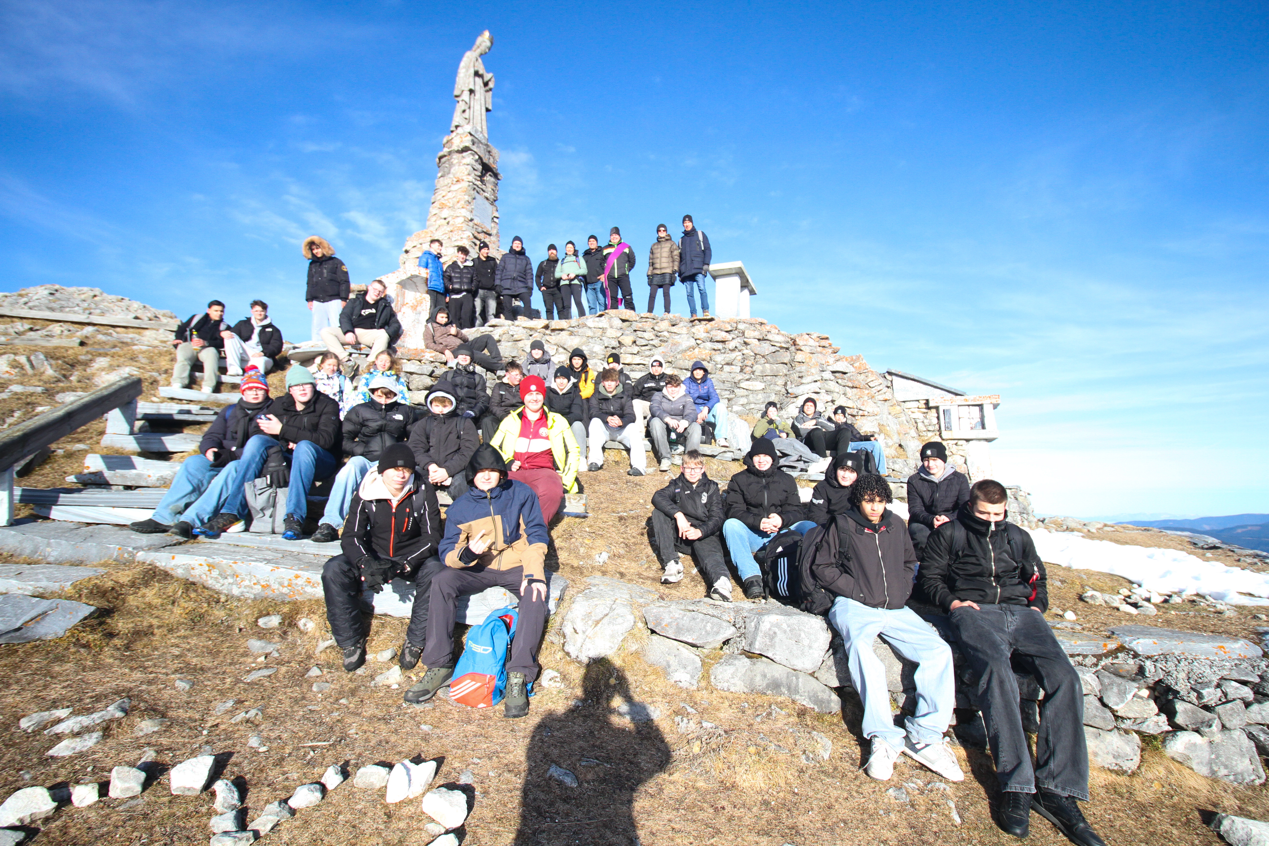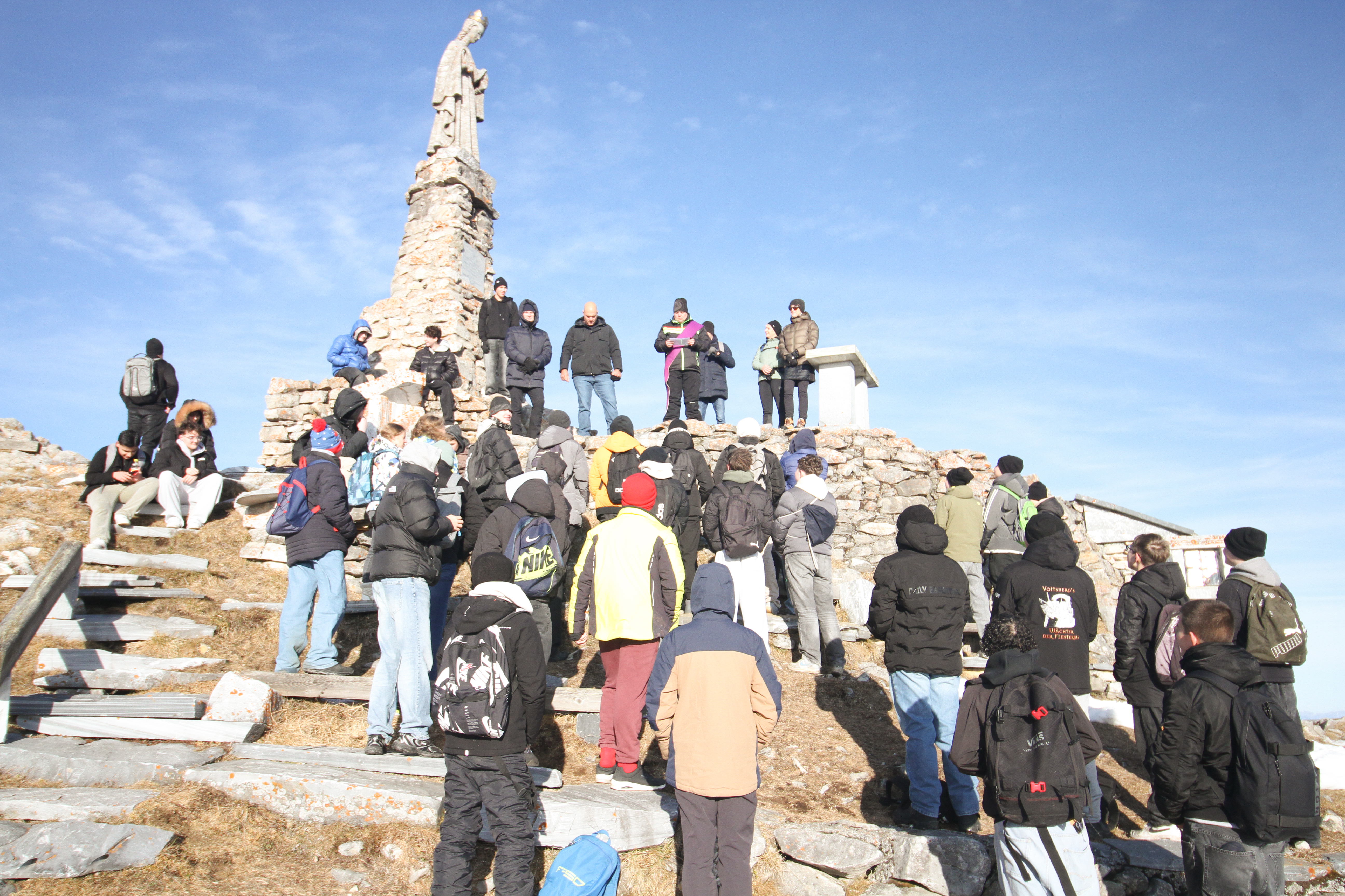 Den Jahresabschluss 2025 begingen die Schülerinnen und Schüler sowie das Lehrer*innenteam der PTS Köflach mit der traditionellen Winterwanderung. Zuerst spazierten sie gemütlich vom Gaberl zum Alten Almhaus und dann von dort auf den Wölkerkogel, wo die bekannte Marienstatue steht. Mit einer besinnlichen Andacht verabschiedete Religionslehrer und Diakon Stephan Reicher dort alle in die Weihnachtsfeiertage und die wohlverdienten Weihnachtsferien.